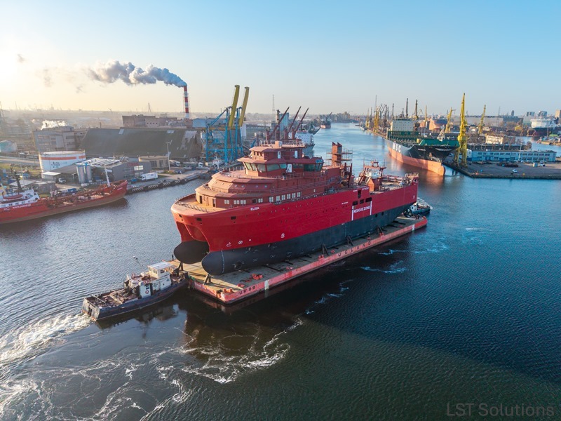 Stalowy katamaran o imponujących rozmiarach (90 m długości i wadze ok. 3600 ton) został przeładowany z nabrzeża stoczni na ponton transportowy, odpowiednio zabezpieczony, a następnie przeholowany na dok pływający, gdzie jednostka została zwodowana. Usługa wykonana kompleksowo, od koncepcji po pełną realizację. Każdy etap wymagał doświadczenia, wiedzy oraz ścisłej koordynacji wszystkich zaangażowanych stron, w celu spełnienia najwyższych standardów.